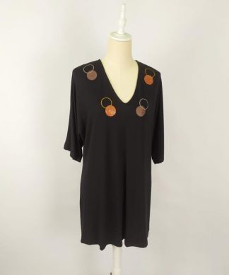 Vestido corto efecto encaje color gris topo, transparente sobre el fondo