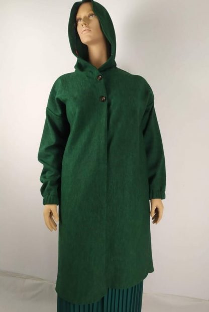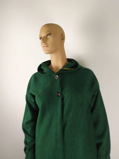 Chaqueta de punto gordo casual mujer talla grande. Modelo recto con manga acabada en el puño con goma , con capucha. Se abrocha con dos botones en la zona del pecho. Color verde.