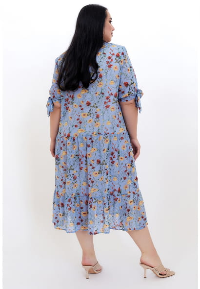 Vestido celeste, de gasa con estampado floral.
