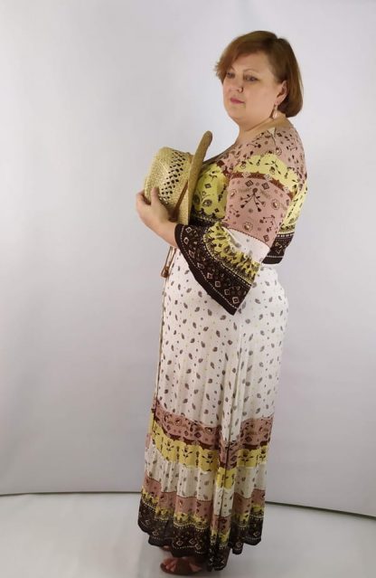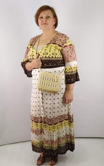 Vestido largo, multicolor, con manga corta. Abotonado en la parte delantera, tipo camisero. Talla 48-52