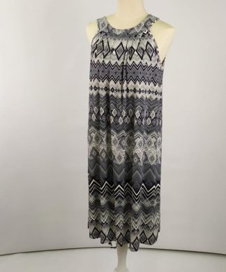 Vestido premamá, corto, de gasa con lunares y estampado.